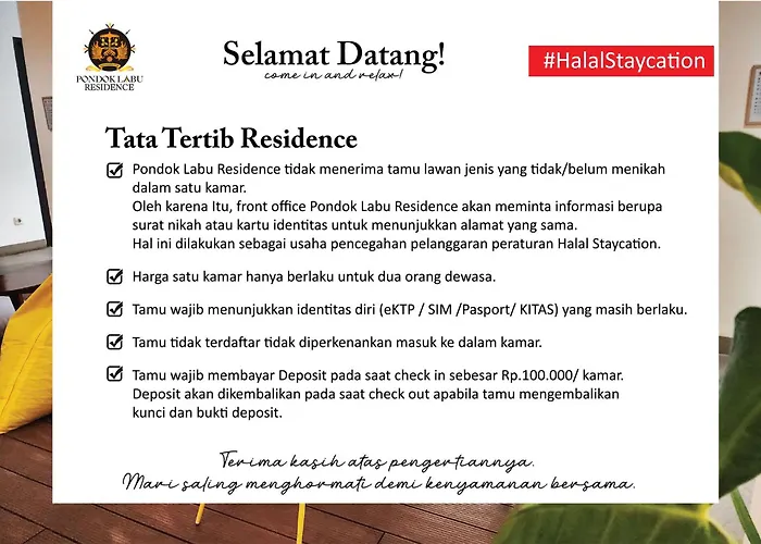 Terletak tak jauh dari Kite Museum of Indonesia, Pondok Labu Residence Jakarta berbintang 2 ini berjarak 10 menit berkendara dari Taman Wisata Situ Gintung.